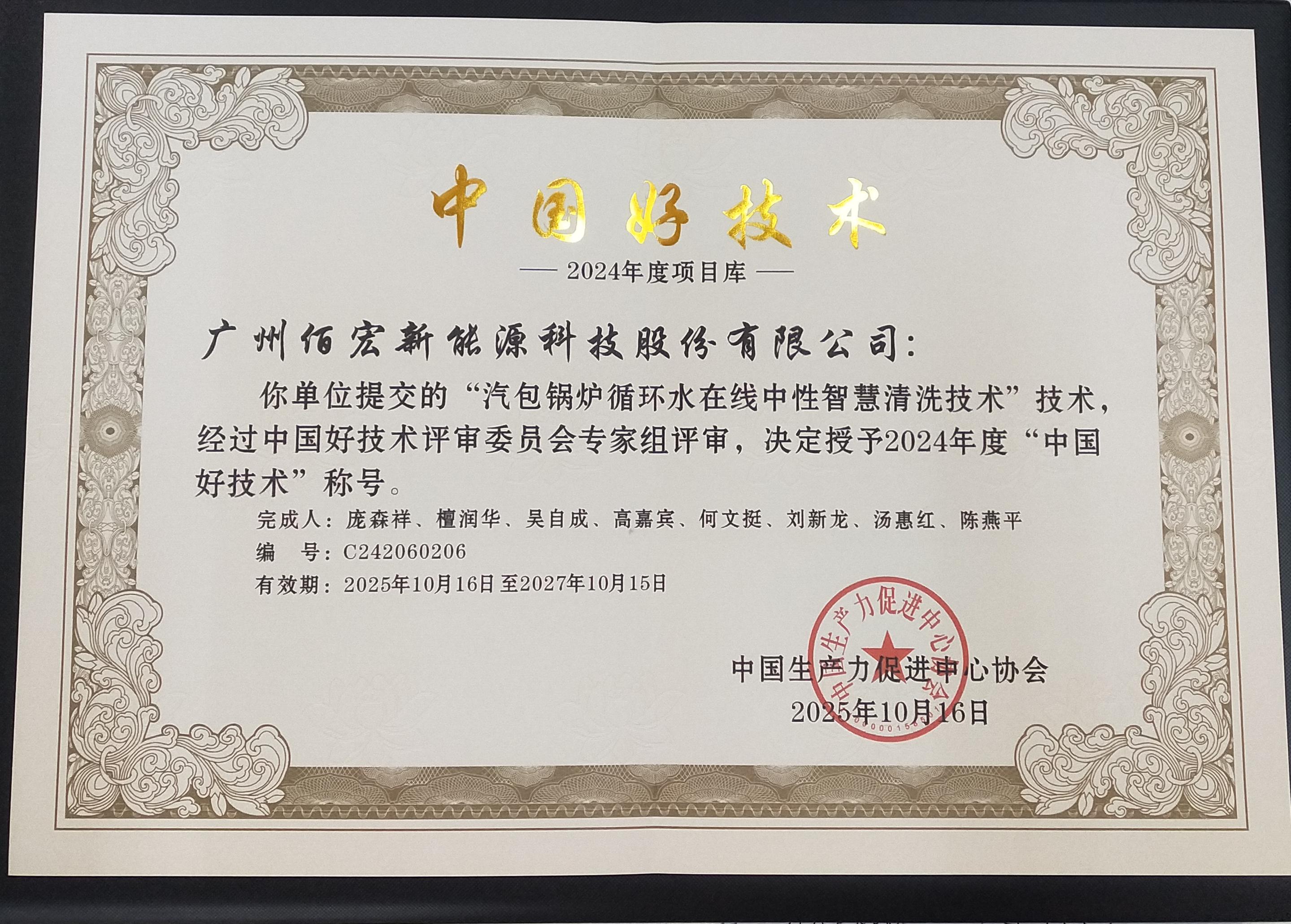 近日,由中國生產力促進中心協會聯合全國各級科技服務機構共同發起的2024年“中國好技術”評選結果正式揭曉,全國只有270個項目脫穎而出獲評殊榮。其中,廣州佰宏新能源科技股份有限公司(以下簡稱“佰宏新能源”)自主研發的“汽包鍋爐循環水在線中性智慧清洗技術”憑借突出的創新性、實用性與環保價值成功入選,公司銷售總監李霞受邀出席頒獎大會并代企業領獎。