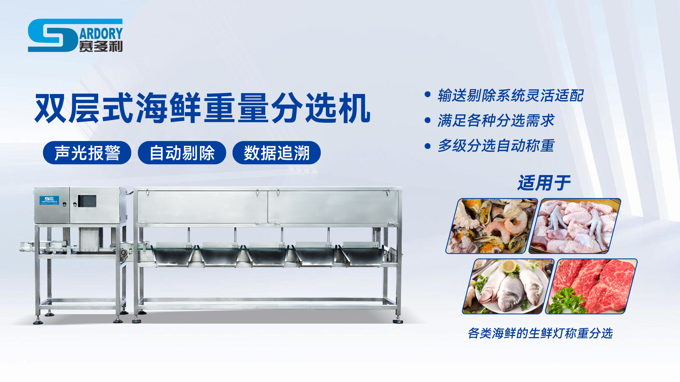 多等級分級,滿足市場需求。禽肉市場對產品規格需求多樣,如禽翅需分為小號(單只 50g-80g)、中號(80g-120g)、大號(120g 以上)等等級。廣東賽多利稱重分選機支持靈活的重量區間設置,工作人員可根據市場需求預設 2-6 個不同重量等級,設備通過高靈敏度稱重傳感器快速采集禽肉重量數據(響應時間≤0.3 秒),與預設區間比對后,通過氣動推桿將禽肉平穩推送至對應等級的收集區。分級過程全程自動化,無需人工接觸禽肉,既避免人工分揀導致的等級混淆,又減少手部接觸可能帶來的衛生風險,確保同一等級的禽肉重量均勻,滿足市場對不同規格產品的需求。