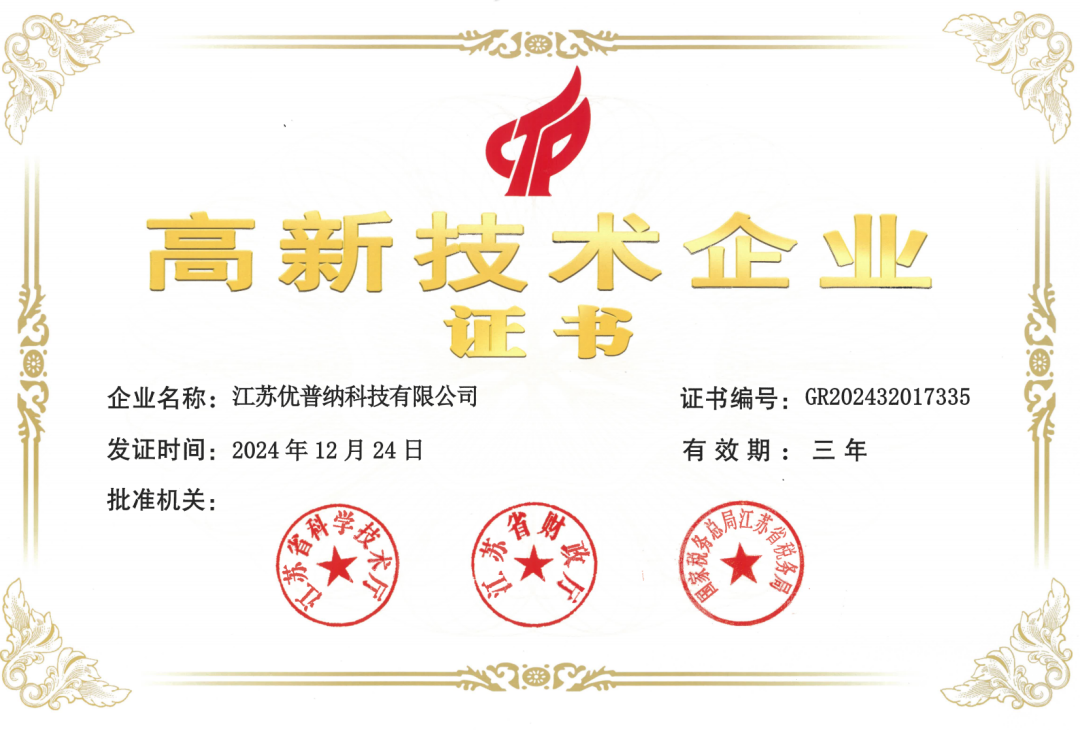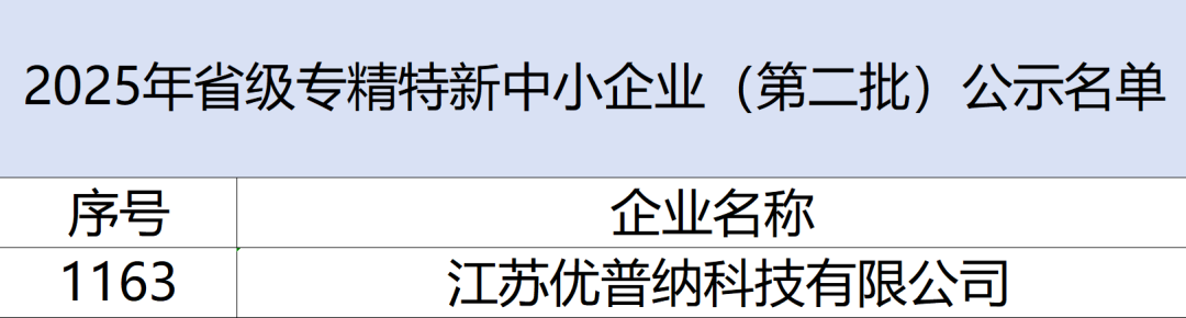 ?江蘇優普納強勢入選2025年江蘇省\"專精特新”中小企業