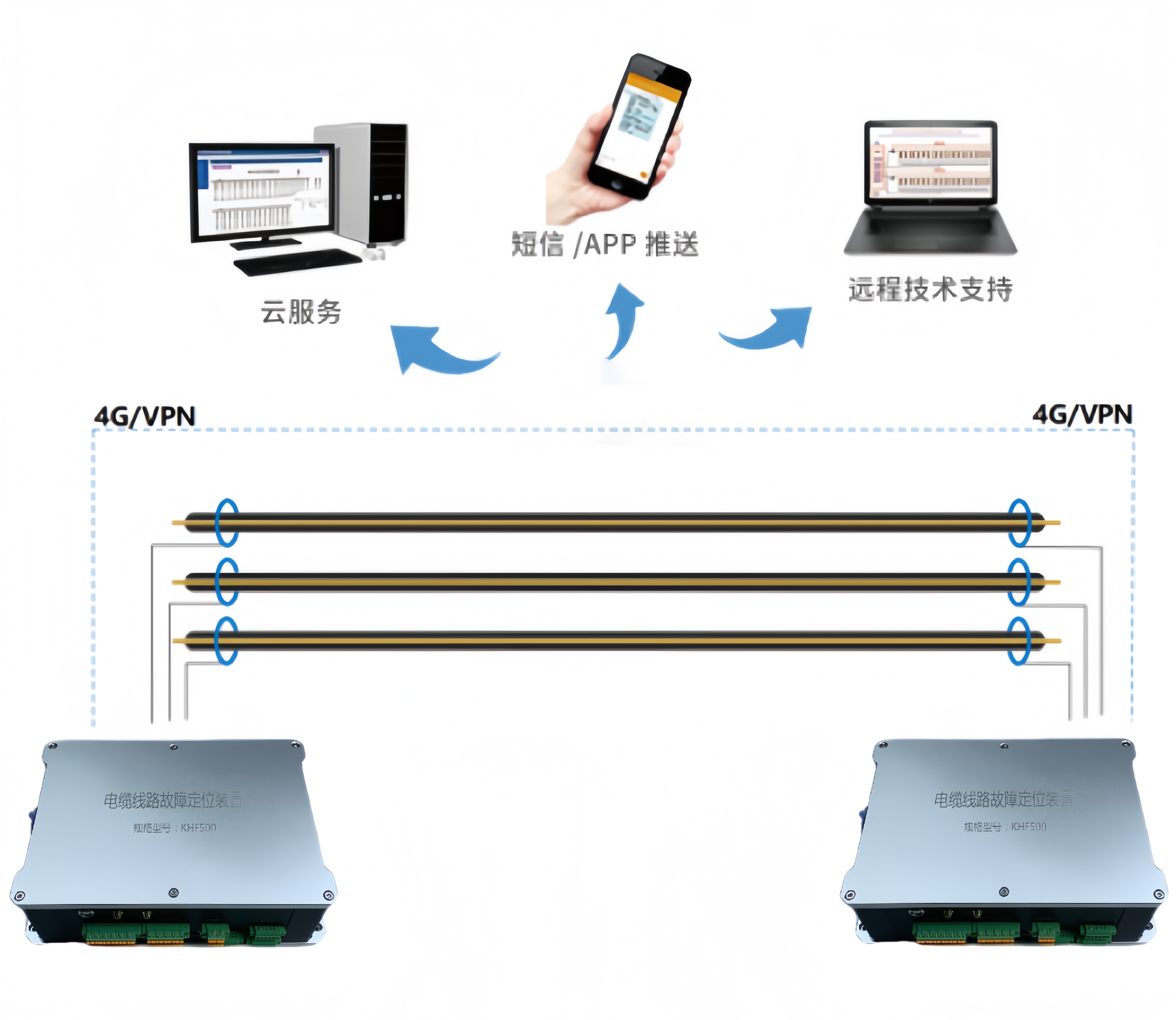 在電纜線路上科學部署多個監測終端,實時采集故障發生時的工頻信號與行波信號,實現對電纜線路的全覆蓋、無死角監測,確保故障信號不遺漏;